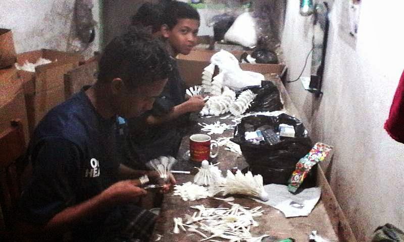 shutlekock sebelum dipacking, finishing dilakukan manual oleh karyawan ,agar menghasilkan kock yang